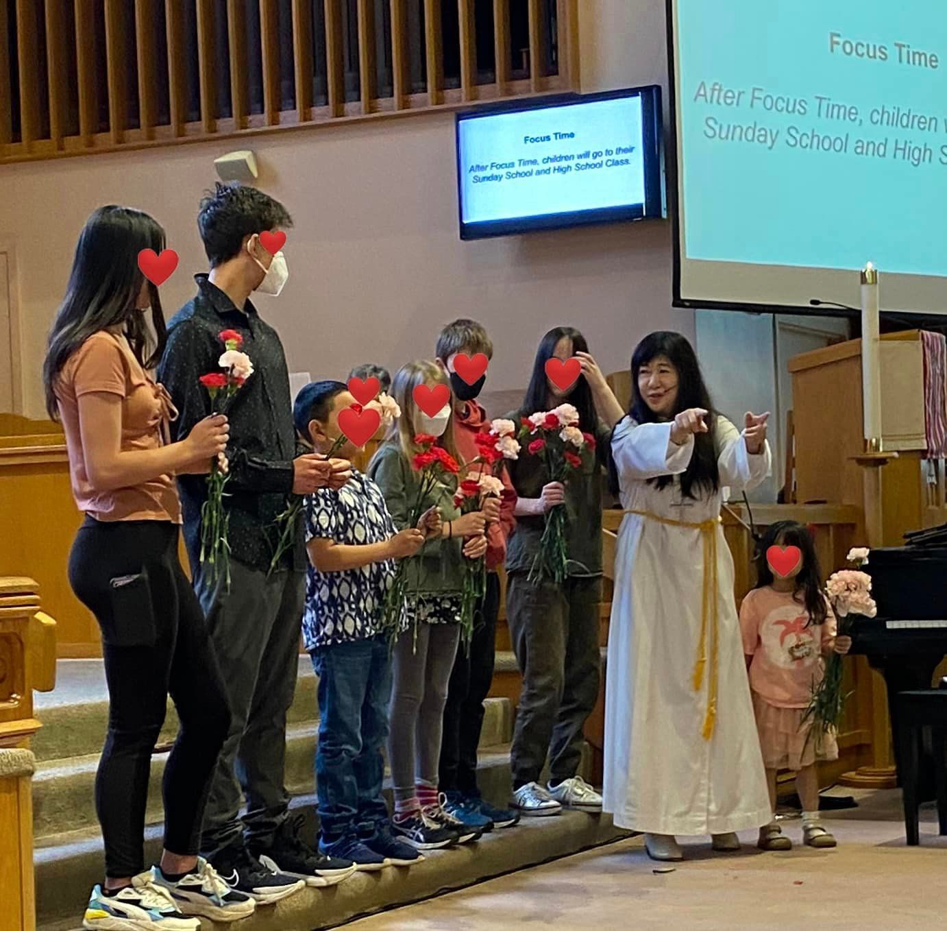 Today, we come as one family, seeking God’s presence, celebrating our faith, and supporting one another. We especially dedicate these flowers to all moms or mother figures. God sends everyone of us out as her beloved children. God sends flowers to every mom and every mother figure.